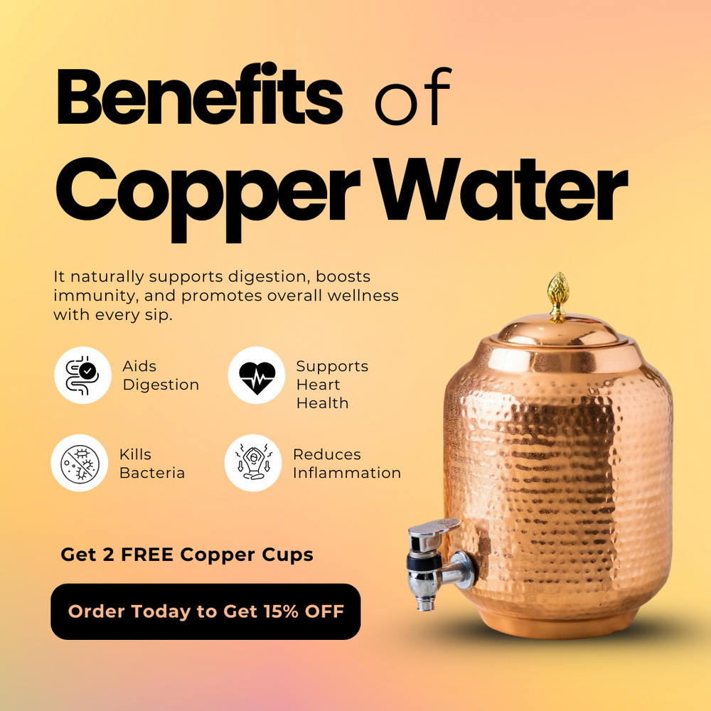 According to Ayurveda, water stored in a Copper Vessel has the ability to balance all the three doshas in your body, (vata, kapha and pitta) and it does so by positively charging the water. There are also numerous additional health benefits that have been attributed to drinking water stored in copper bottles.